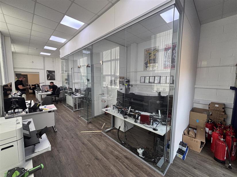 Office/ Studio/ Storage - 74.2 SqM (798 Sq Ft) This room is current split by glass partitions into 3 office spaces. It is possible to remove the partitions and have an open plan space.