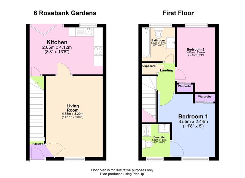 Upstairs, there are two bedrooms, including the main bedroom with an en-suite, as well as a separate bathroom.