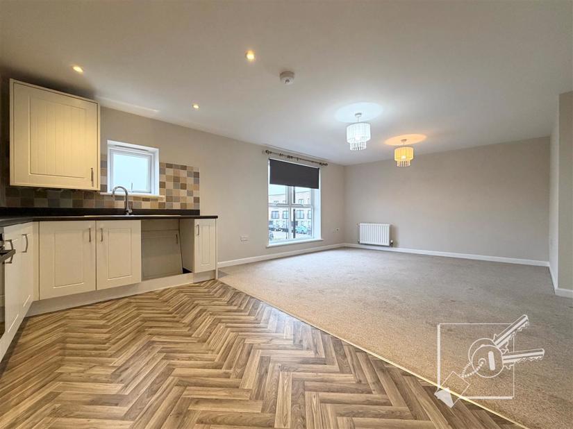 The apartment features a spacious open plan living area with a modern fitted kitchen, two good-sized bedrooms and a contemporary bathroom. The property also benefits from gas central heating.
