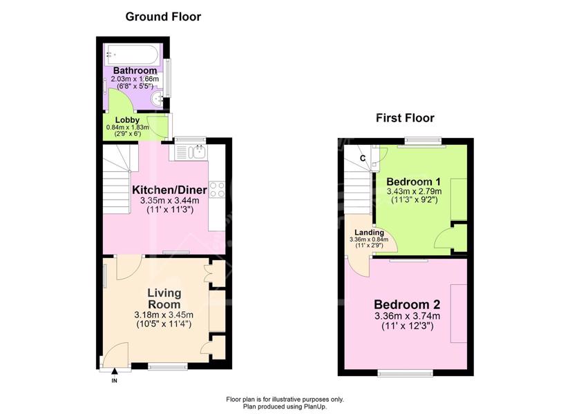 Recently decorated, two bedroom family home in popular residential location. Ground floor is made up of of lounge when you enter the property, through to the modern kitchen / diner space with integrated oven and hob. Ground floor family bathroom with white suite, and shower over the bath. The first floor of the property consisting of the two double bedrooms.
