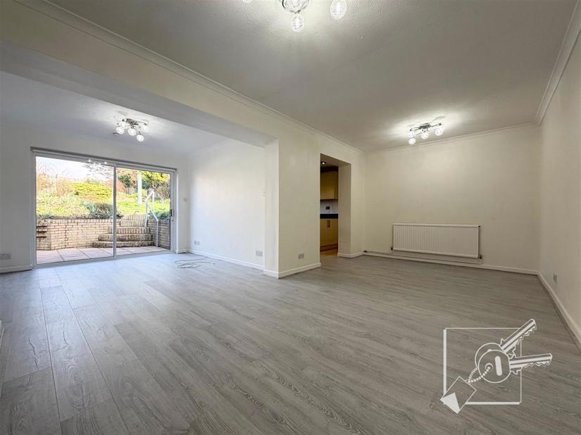 The property has been redecorated throughout and benefits from new flooring and carpets. The ground floor includes a spacious living room, a large dining area with patio doors leading to the rear garden, a fitted kitchen, a downstairs W/C, and internal access to the garage.
