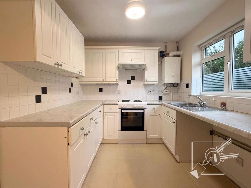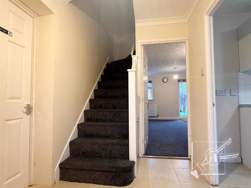 Downstairs there is a spacious living room, kitchen, garage, and access to a rear garden. Upstairs are two double bedrooms, one single bedroom, and a family bathroom.