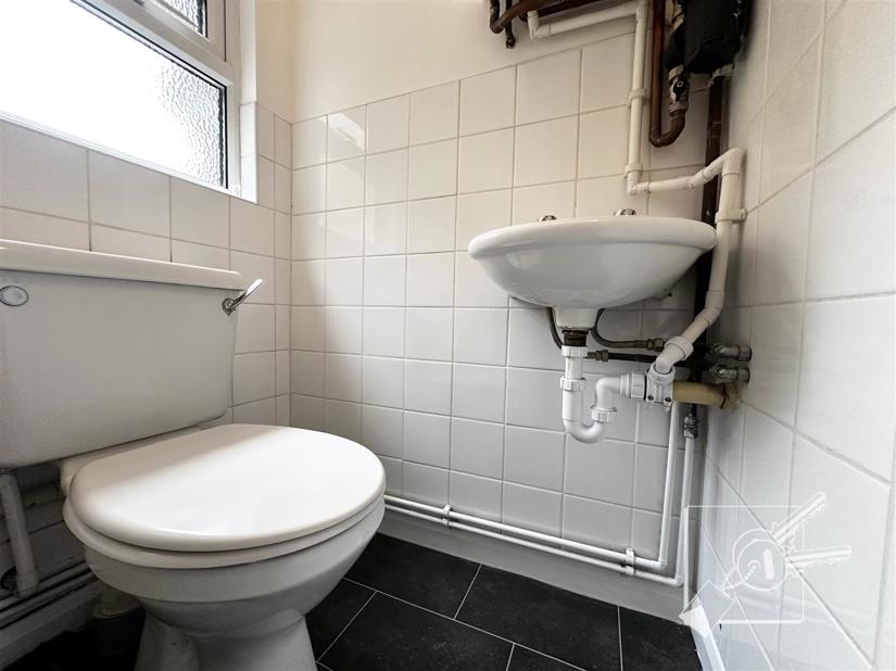 The property offers two reception rooms with new carpets downstairs, a modern kitchen with an integral oven and hob, and a convenient ground floor WC. Upstairs features two double bedrooms, with the bathroom accessed via the second bedroom, and includes a white suite with a shower over the bath.