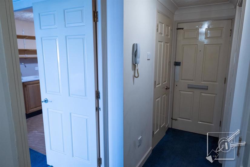 Private entrance door, entryphone handset, carpet, built in storage cupboard, airing cupboard, electric storage heater.