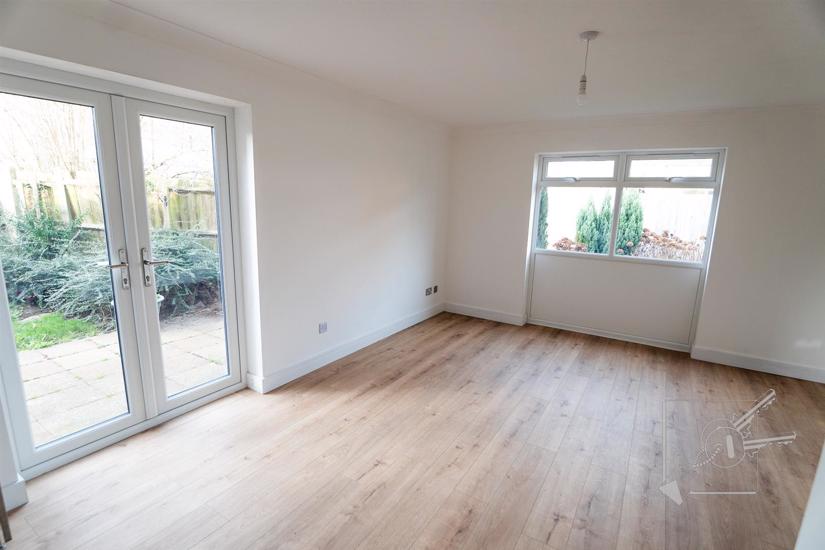 A double aspect room with Double glazed picture window to front, double glazed double leading out to garden Laminate floor, two radiators. Wide opening to: