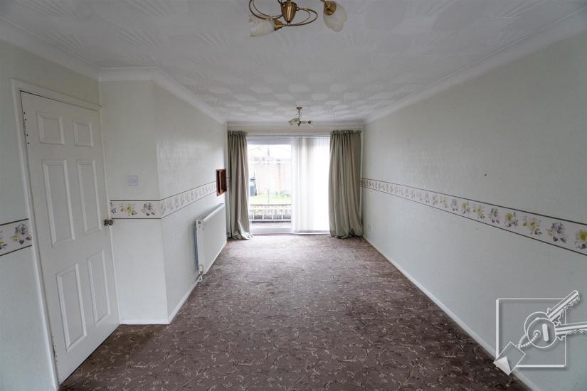 A generous living space comprising carpeted floors. Radiator. Double glazed French doors leading to rear garden. Large double glazed window to the front of the property. Serving hatch into kitchen.