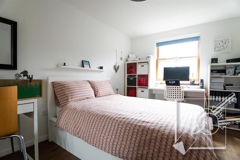 A double room with double glazed window to side, laminate flooring, fitted mirror wardrobe.