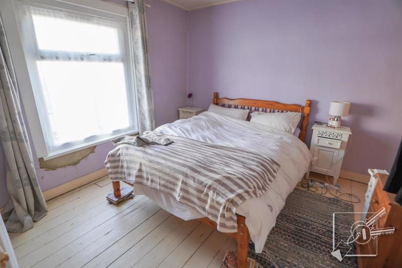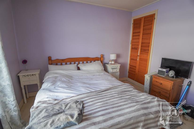 A double room with double glazed window to front, exposed floor boards, gas fire, built in cupboard with access to loft.