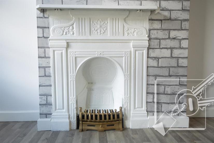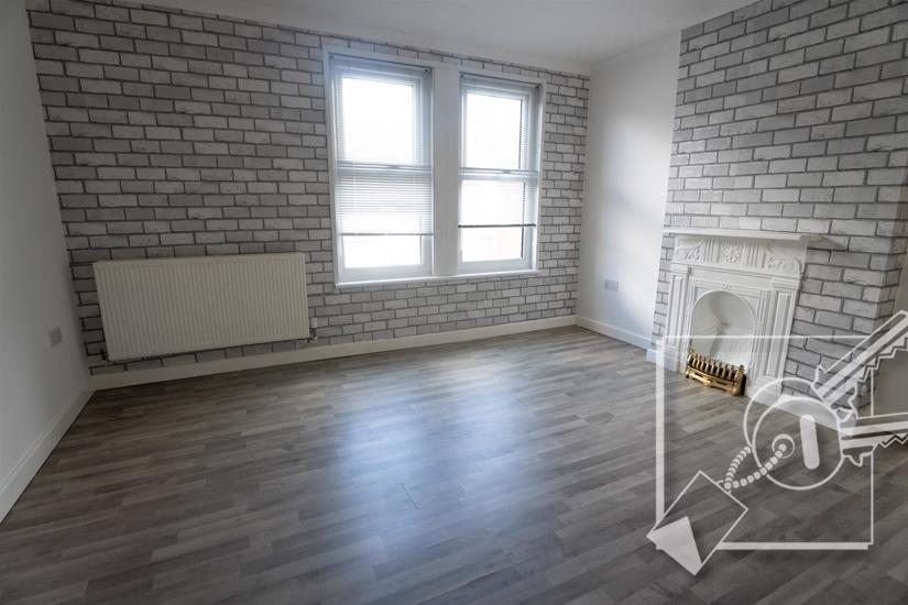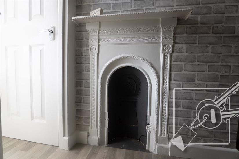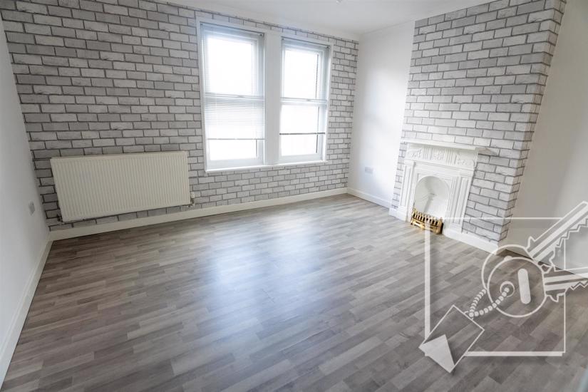 A double room with two double glazed windows to front, feature fire place, radiator, vinyl flooring.