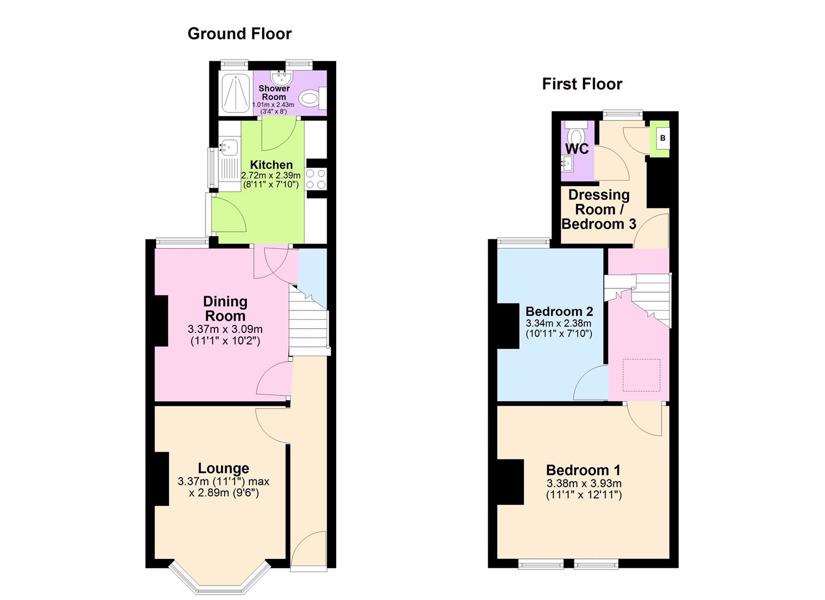 The property also includes a fitted kitchen with oven & hob, ground floor shower room and an additional first floor w.c., ensuring convenience for daily routines. The layout of the house is practical and functional, catering to modern living needs while retaining a sense of warmth and character with feature fireplaces upstairs.