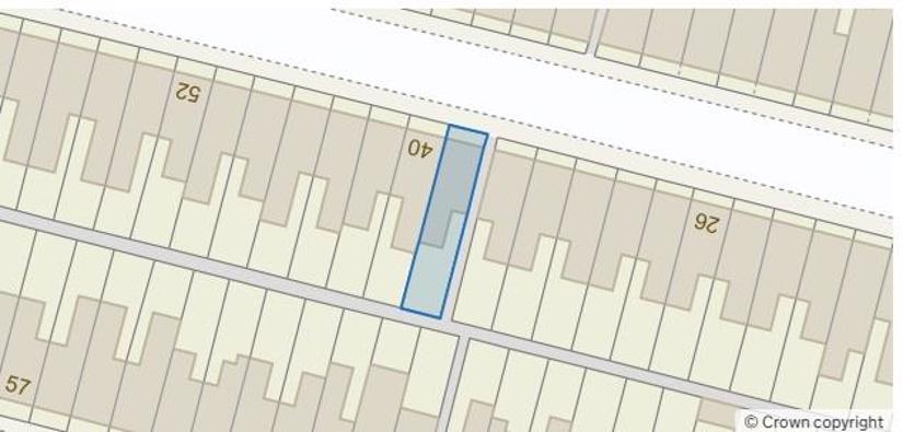 A southerly aspect rear garden with side gate to alley way. Artificial lawn, ornamental gravel, fencing. Anderson shelter which is used as a storage shed.