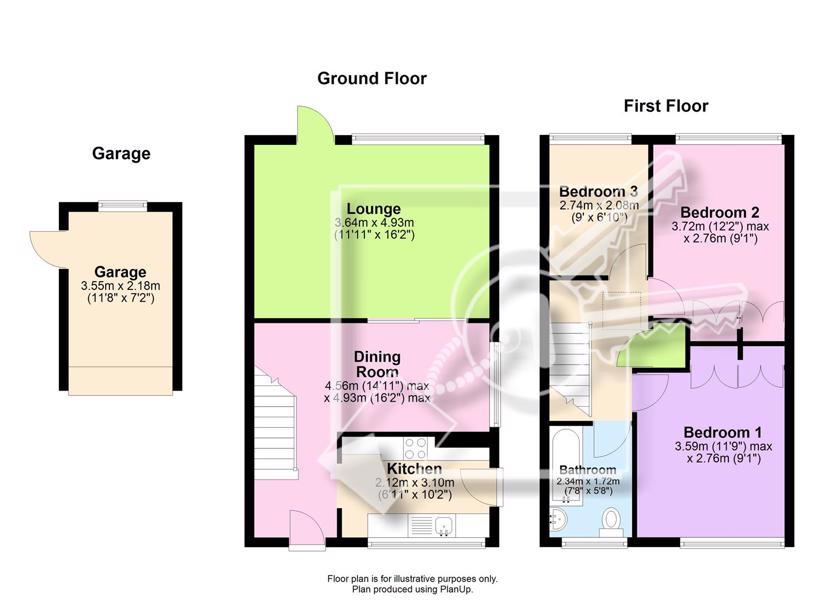 Carpeted staircase leading to first floor. Access to loft, built in linen/storage cupboard.