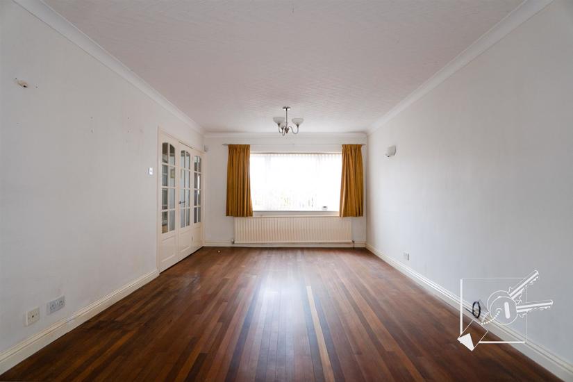 A spacious double aspect room with double glazed window to front, double glazed patio doors to rear leading out to garden, solid wood floor, two radiators.