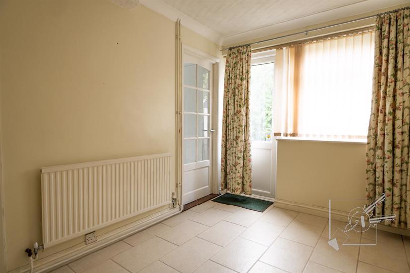 Double glazed door leading out to garden, tiled floor, radiator, under stair cupboard.