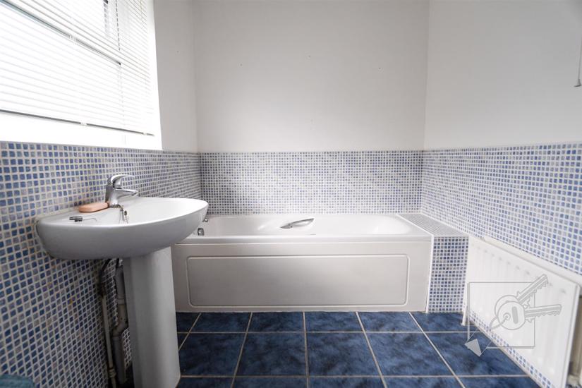 Double glazed window to rear, radiator, part tiled walls. Modern four piece suite comprising panelled bath, separate shower cubicle, pedestal wash basin, low level w.c.