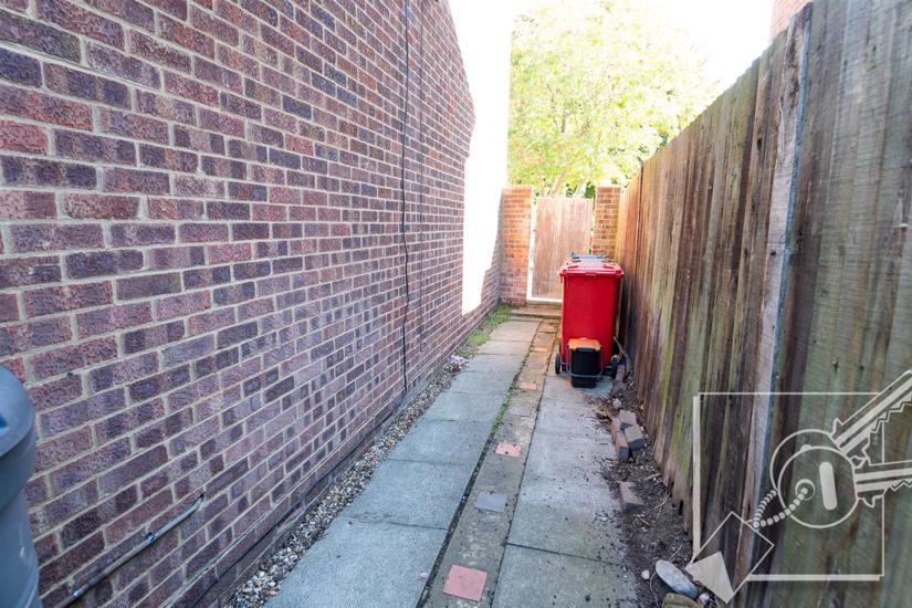 Block Paved frontage allowing off street parking with dropped kerb. Side access leading to rear garden. Access to front door and garage.