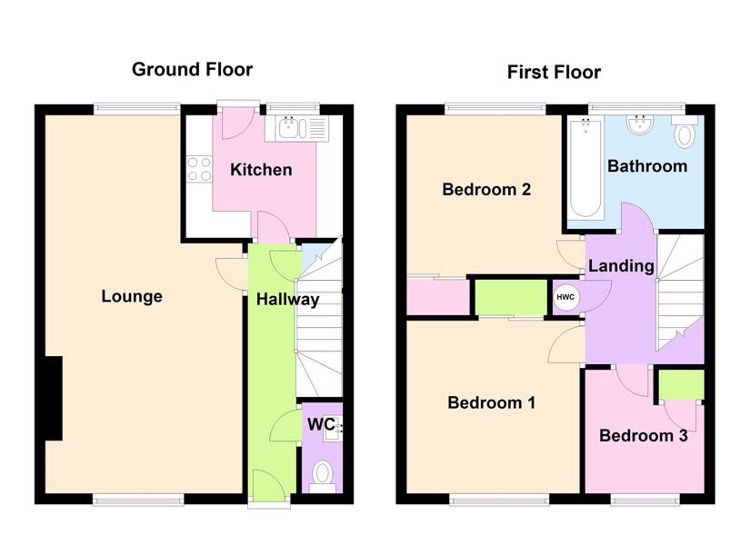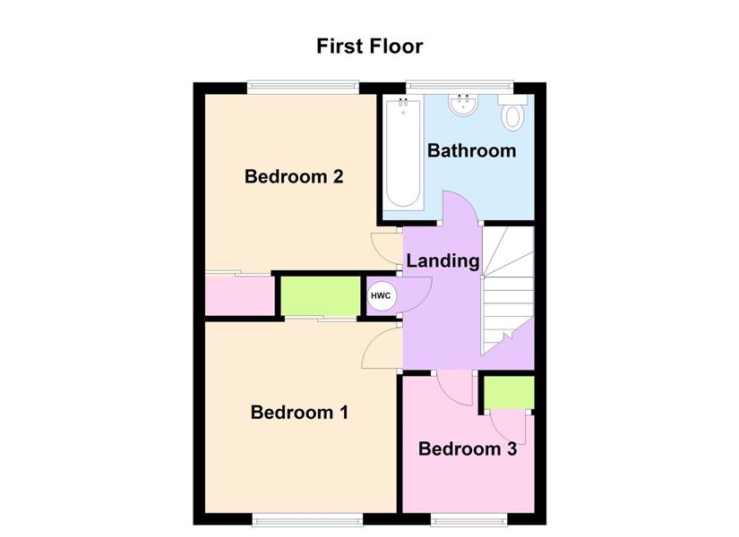 Stairs to ground floor, loft hatch for access to loft. Storage cupboard housing the immersion hot water cylinder. Doors leading to bedrooms and bathroom.