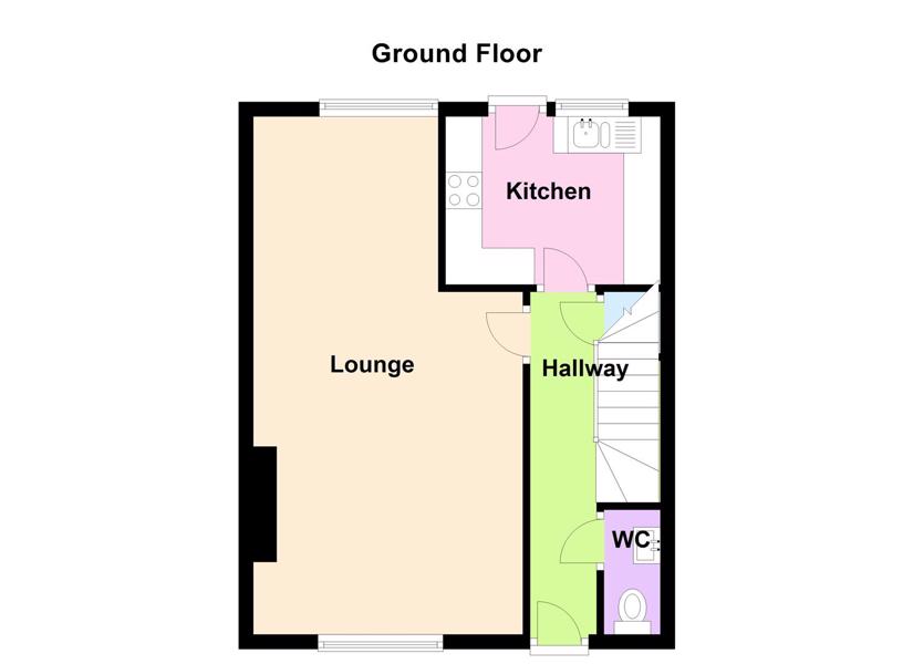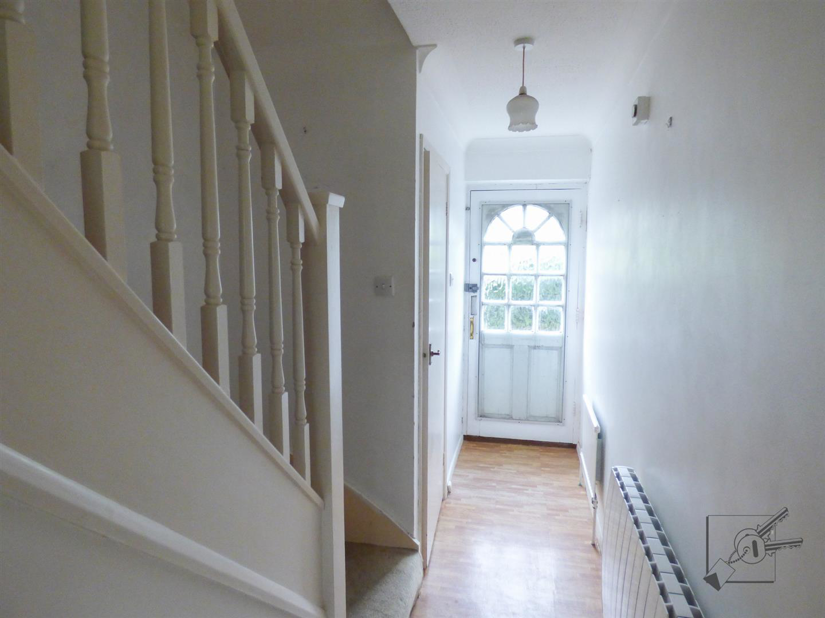 Wood and glass panelling front door with secondary glazing. Doors leading to lounge/dining area on left, with kitchen at the rear and cloakroom before the stairs. Fitted with a wall hung modern electric heater. (note: gas central heating condemned - newer electric heaters installed for heating) Storage cupboard under stairs housing the electric meter and consumer unit.