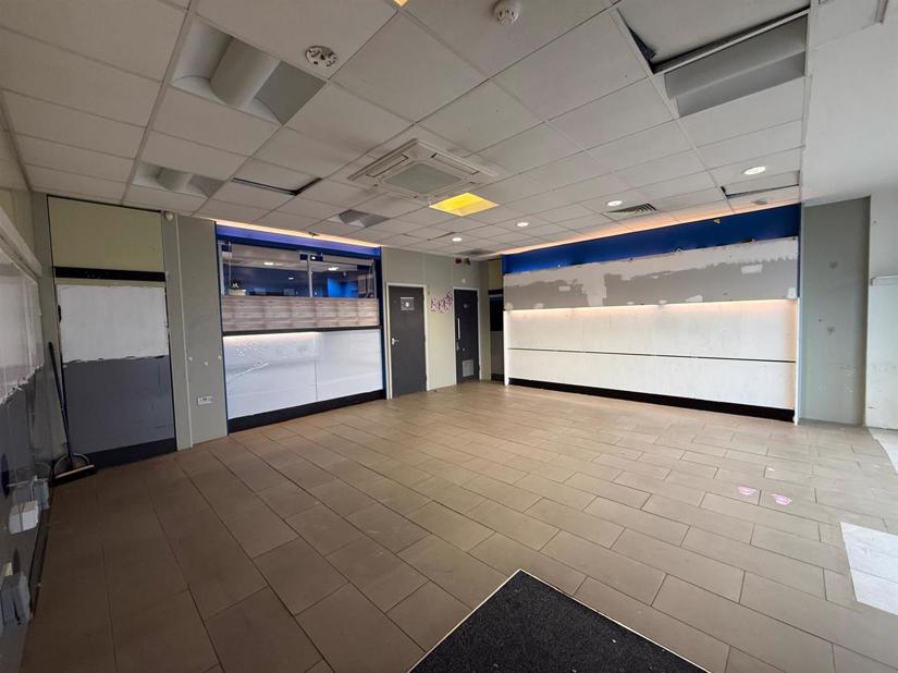 Ground floor retail unit totalling 570 Sq Ft. Prominent Corner Position On Square Located In High Density Residential Area. Free Customer Parking. Kitchenette And 2 WC.
