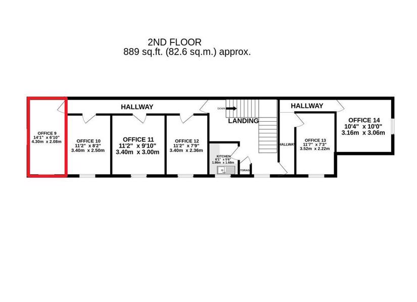 Office 9 is a 2 man office of 96 square feet (8.94 SqM).