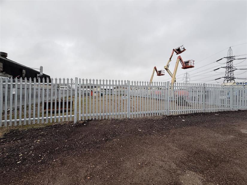 An open storage yard measuring 6,103 Sq Ft enclosed by steel palisade fencing with electric and water.