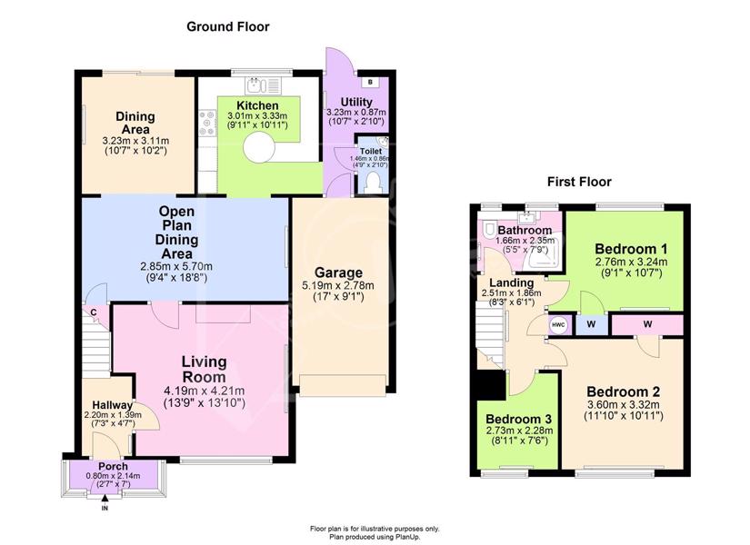 Upstairs there are three bedrooms, including two double bedrooms, and a family bathroom.