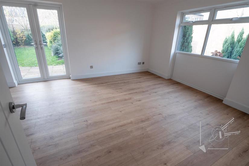 A double aspect room with Double glazed picture window to front, double glazed double leading out to garden Laminate floor, two radiators. Wide opening to: