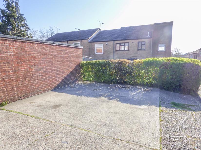 The property is approached from the front footpath with a covered canopy over front door. Outside bin store/meter cupboard to side, providing additional storage. Large open front garden. (Some of the other home owners of the one bedroom properties on this development have fenced in the front gardens and made it their main garden).
