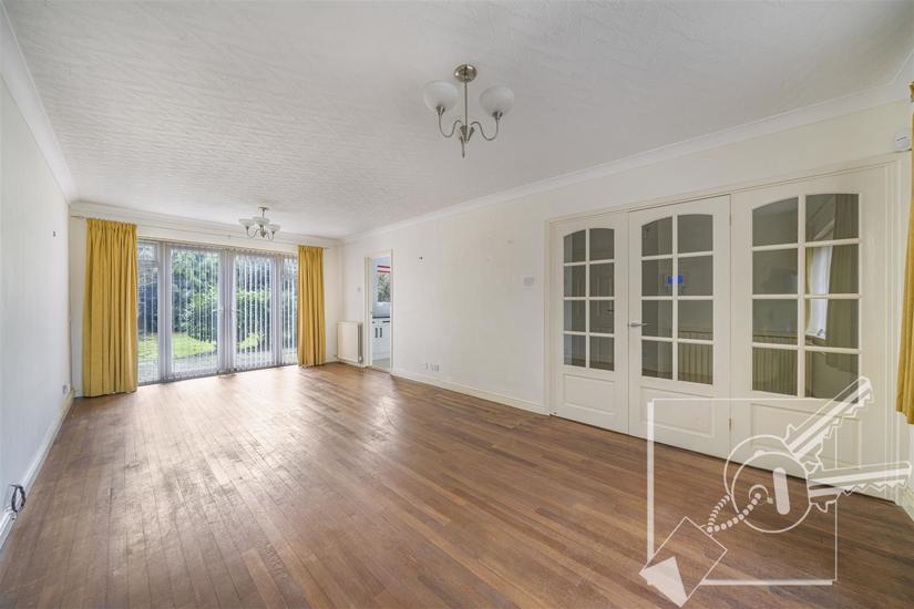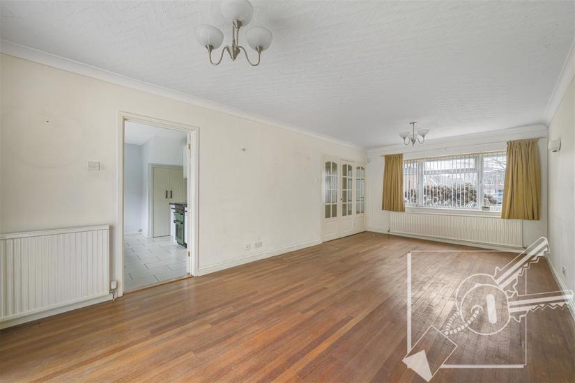 A spacious double aspect room with double glazed window to front, double glazed patio doors to rear leading out to garden, solid wood floor, two radiators.