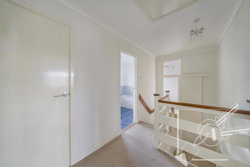 Carpeted stair case and landing, built in storage cupboard. access to loft with integral ladder.