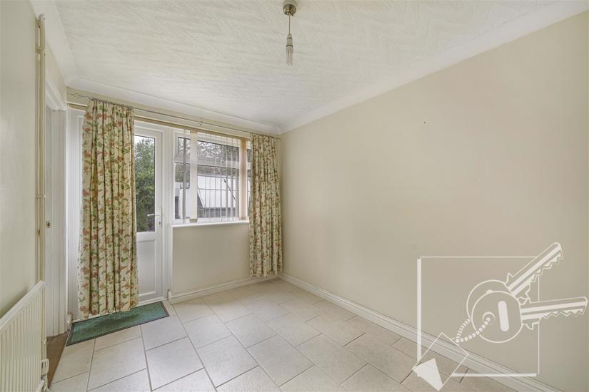 Double glazed door leading out to garden, tiled floor, radiator, under stair cupboard.