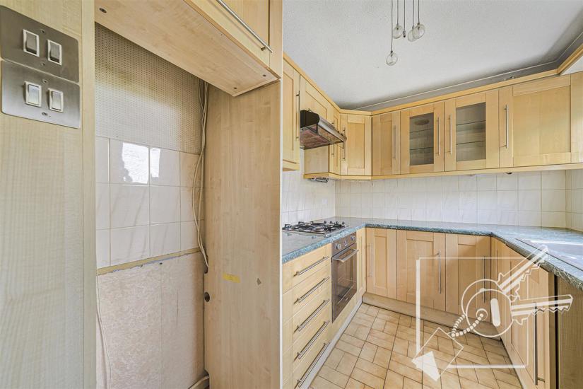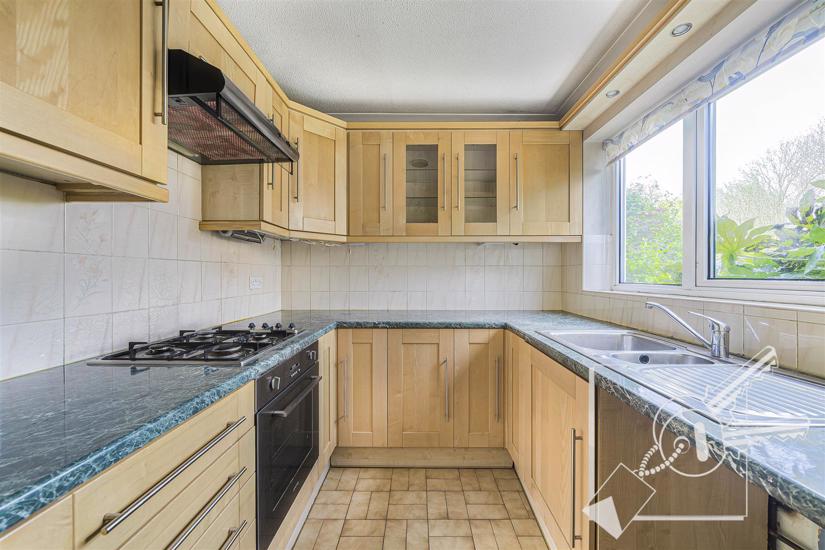 Double glazed windows to front, tiled floor, local tiling to walls. Fitted with a range of Beech effect wall and base units, rolled edge work surfaces, stainless steel one and a half bowl sink and drainer. Built in 'Smeg' gas hob with extractor hood over and built in oven.