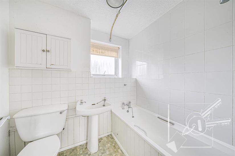 Double glazed window to front. White suite comprising panelled bath with Triton shower unit over. pedestal wash basin, low level w.c.. Local Tiling to walls, vinyl flooring, radiator.