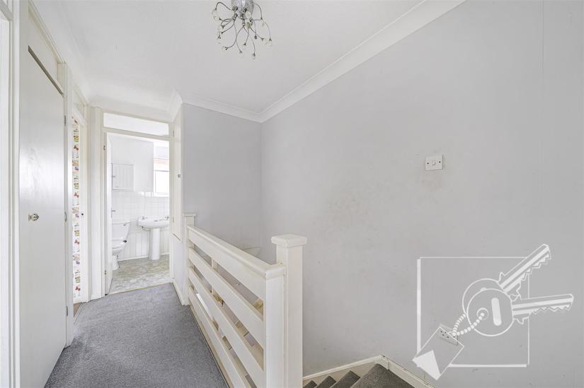 Carpet, access to loft. Built in over stair cupboard. Airing cupboard with hot water cylinder.
