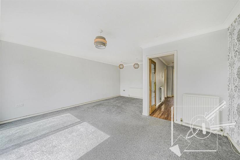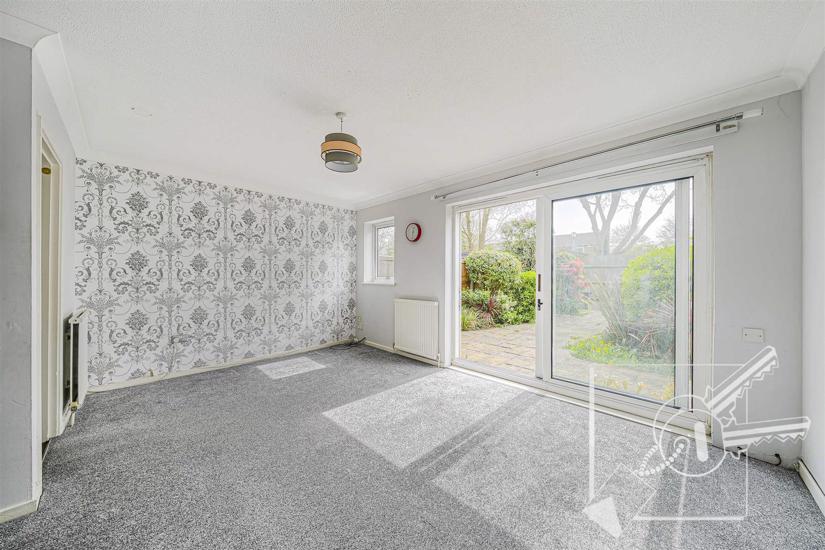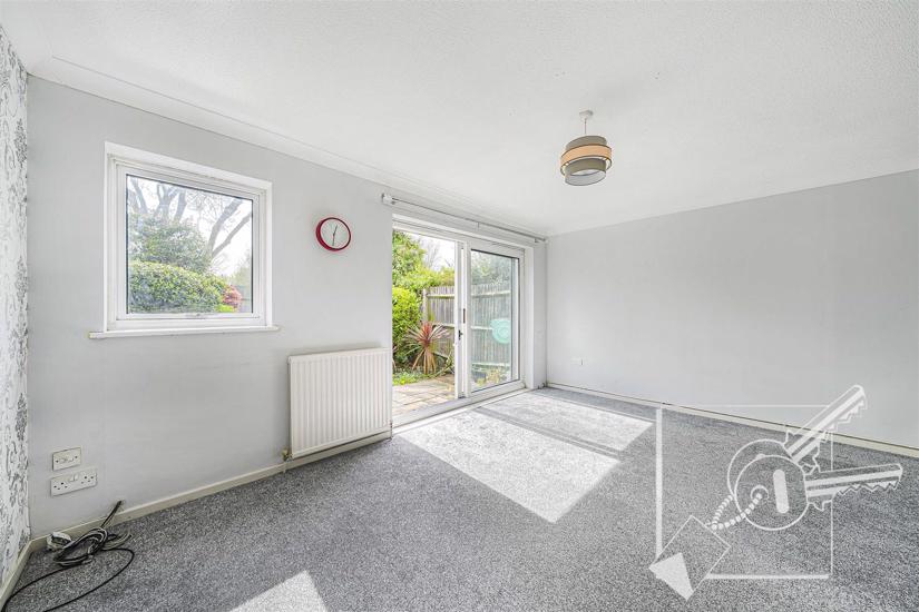 An L shaped room with double glazed patio doors leading out to rear garden and window to rear. Carpet, three radiators.