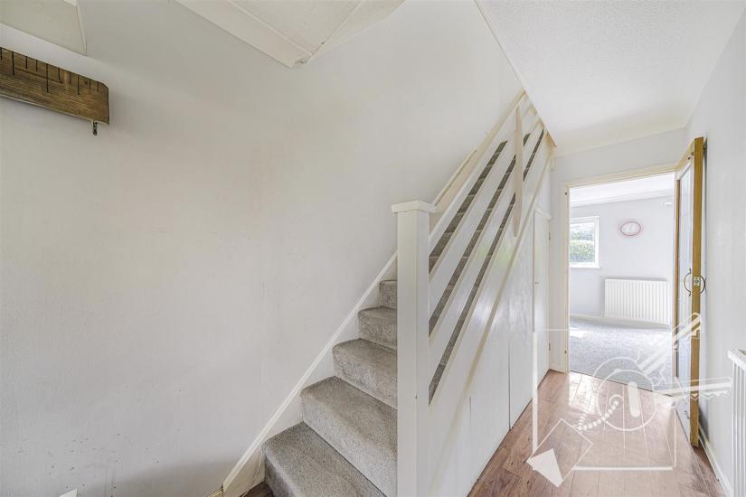 Double glazed front door, laminate floor, radiator, under stair storage cupboard.